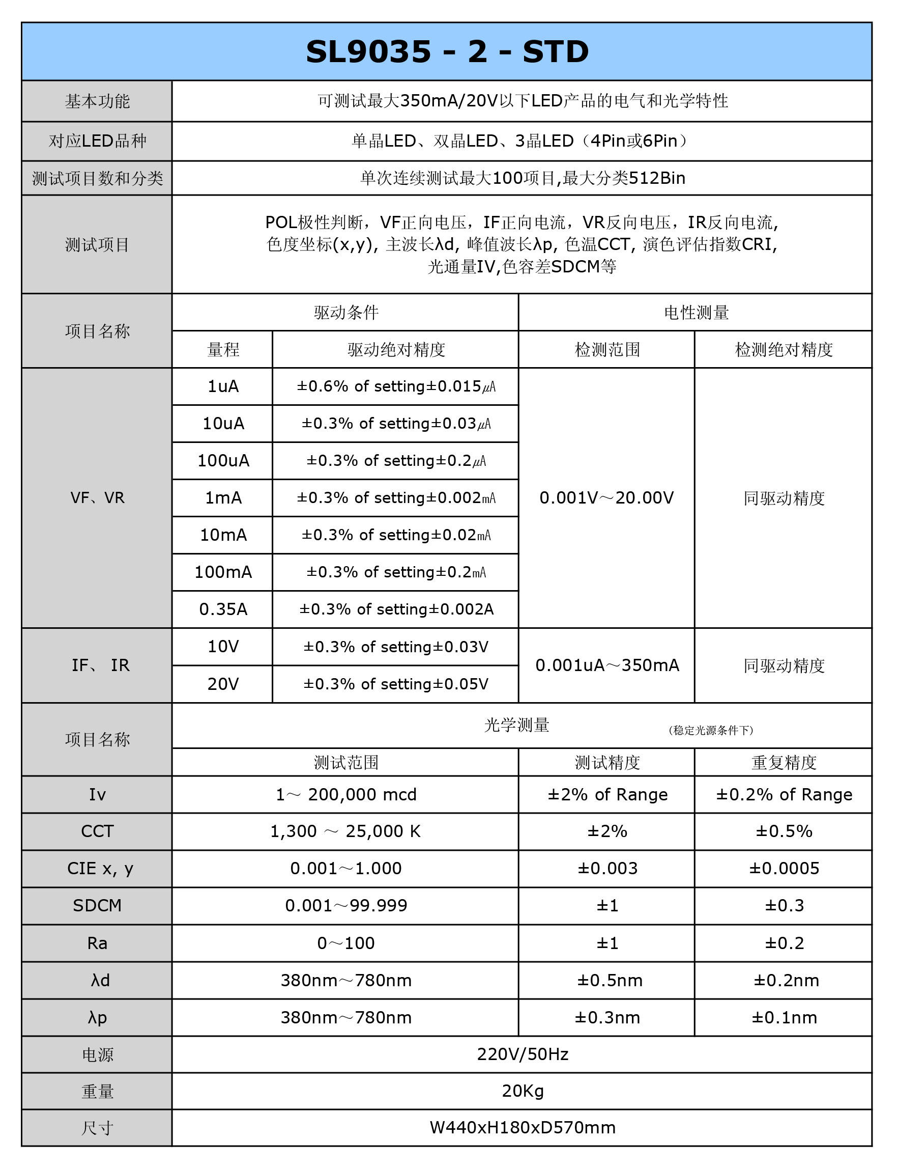 4.采用专业级波长仪,充分保证了LED光学特性的测试精度。