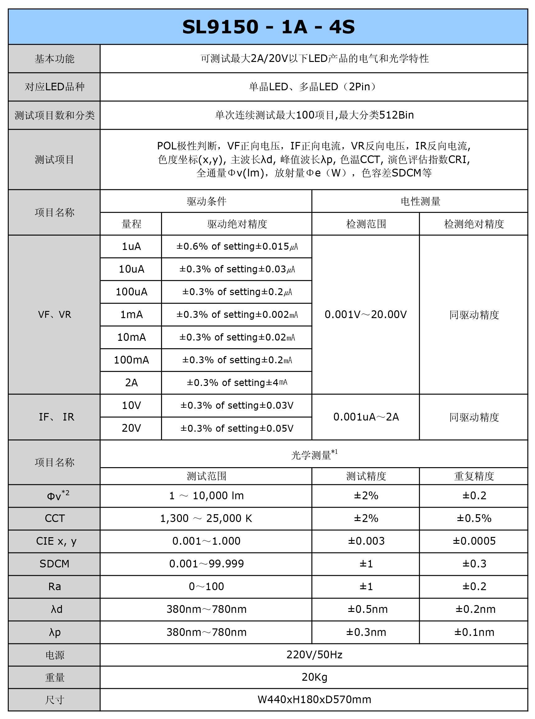 4.采用专业级波长仪结合积分球方式, 充分保证了LED光学特性的测试精度。